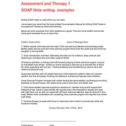 Pediatric Occupational Therapy Soap Note Example. As a pediatric speech therapist, you know that defensible documentation (i.e., clear and detailed notes) is an essential part of demonstrating your skilled service Search the web for sample SOAP notes for speech language therapy or ask your colleagues for examples of well done SOAP notes. SOAP note facilitates a standard method in showing patient information.