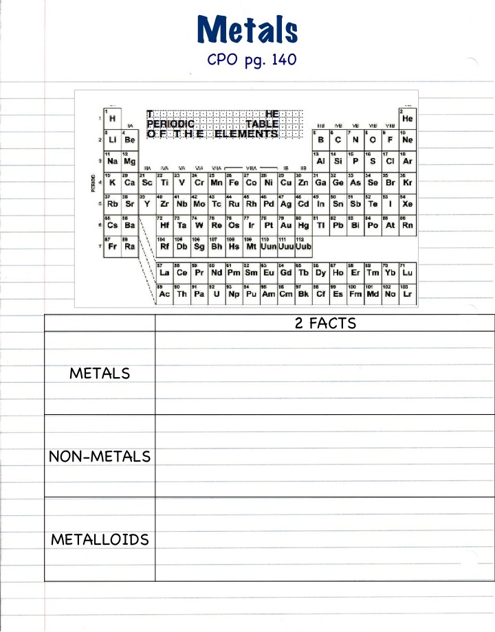 Periodic Table Metals And Nonmetals Worksheet. Worksheet for identifying metals, nonmetals, metalloids and their properties. Metals are good conductors of heat and electricity Nonmetals are further to the right on the periodic table, and have high ionization energies and high electron affinities, so they gain electrons relatively.