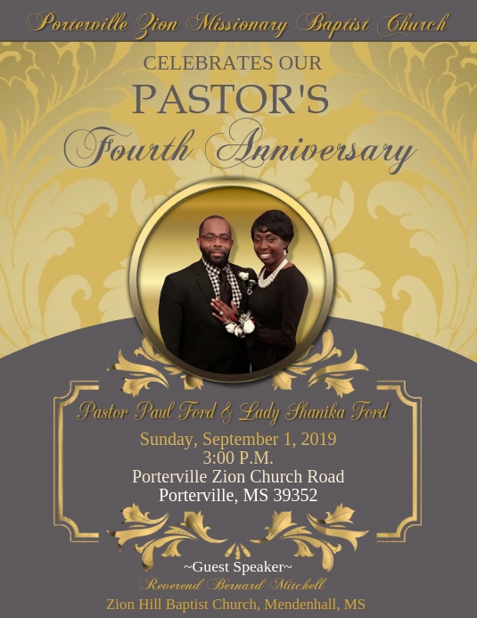 Pastor Anniversary Program Templates Free. The Purple and Gold used makes this an elegant template. Can also be edited and used for other types of events.